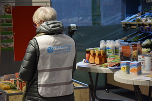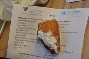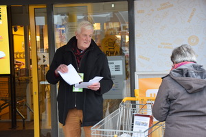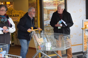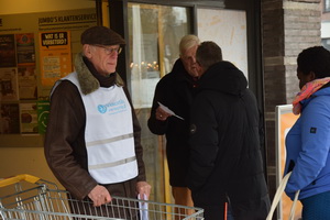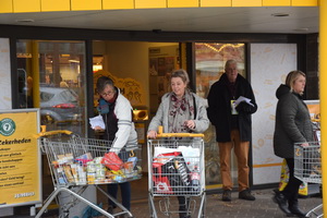 Vrijwilligers van de Diaconiegroep van de H. Augustinusparochie en de Vincentiusvereniging stonden aan de ingang van twee supermarkten Plus en Jumbo opgesteld om mensen aan te moedigen voedsel te geven.