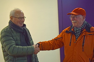 Els Wigmans, Truus Wagenaar en Henk Jansen kregen bloemen van Augustinusbestuurder Sebastiaan Franssen